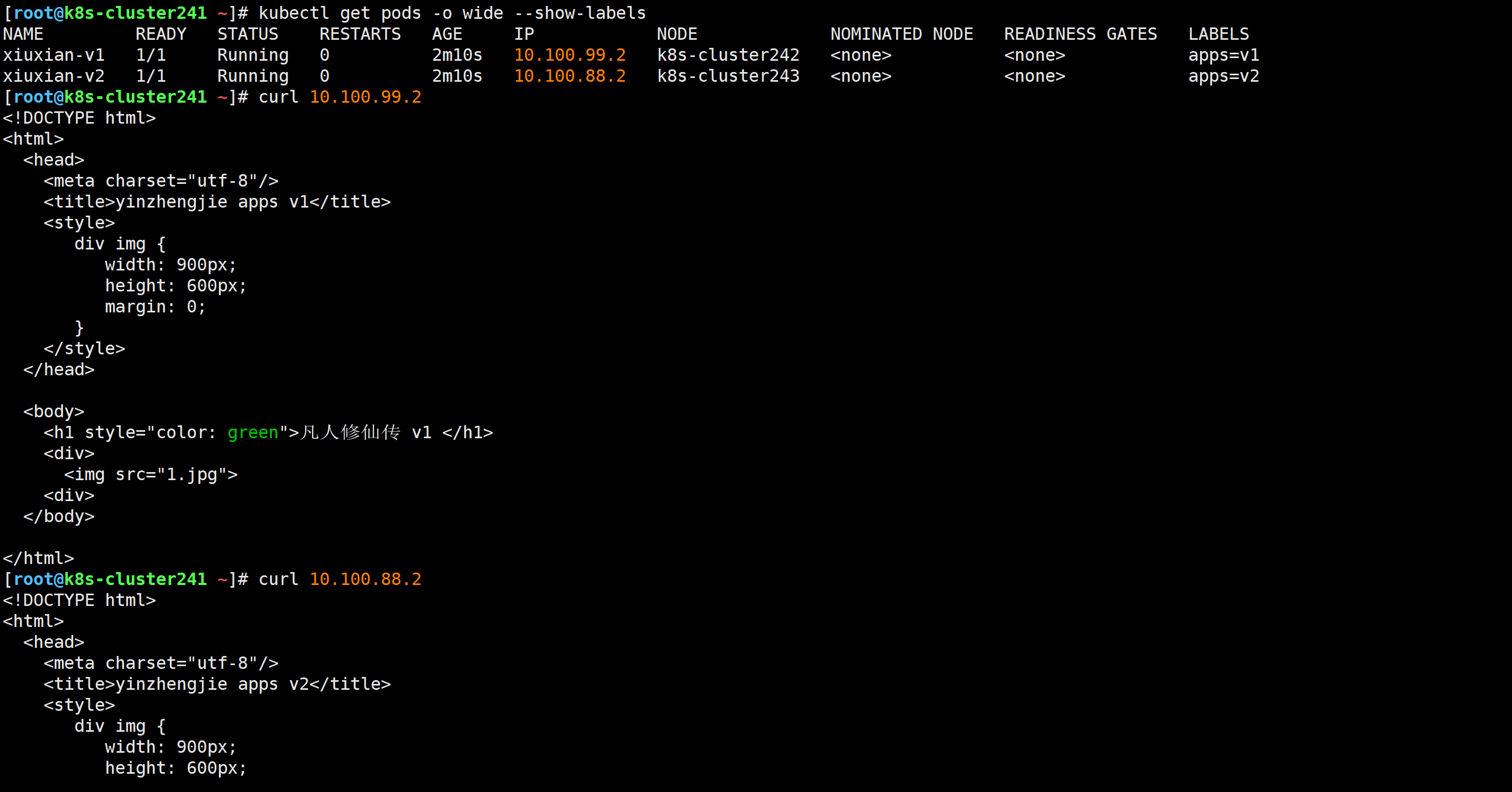 [root@k8s-cluster241 ~]# curl 10.0.0.150