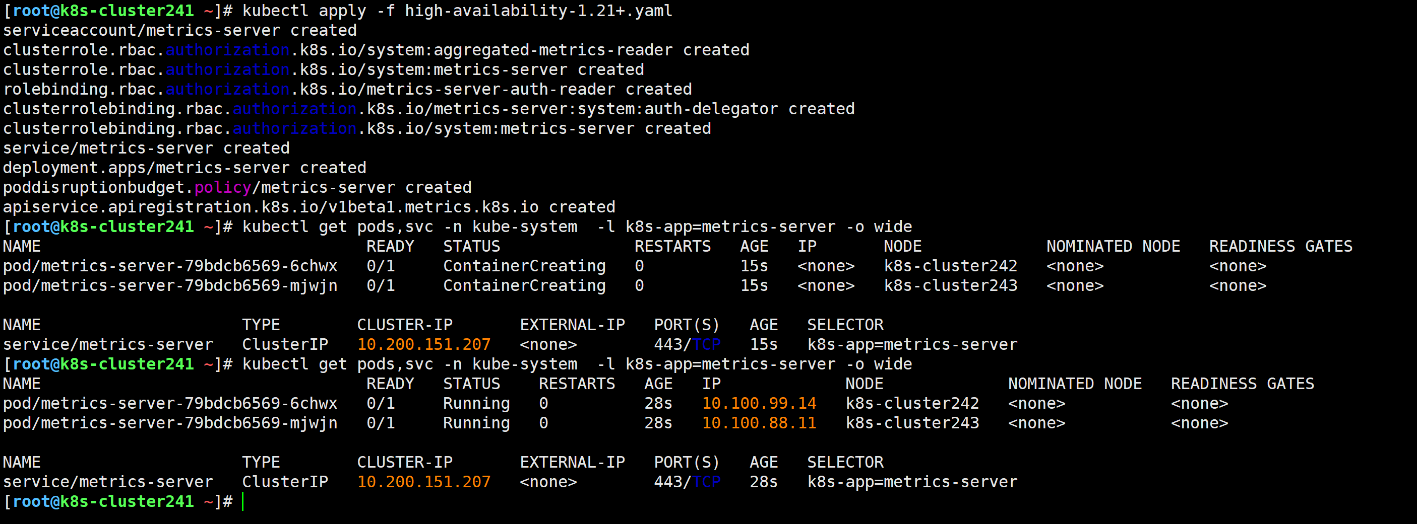 [root@k8s-cluster241 ~]# kubectl apply -f high-availability-1.21+.yaml