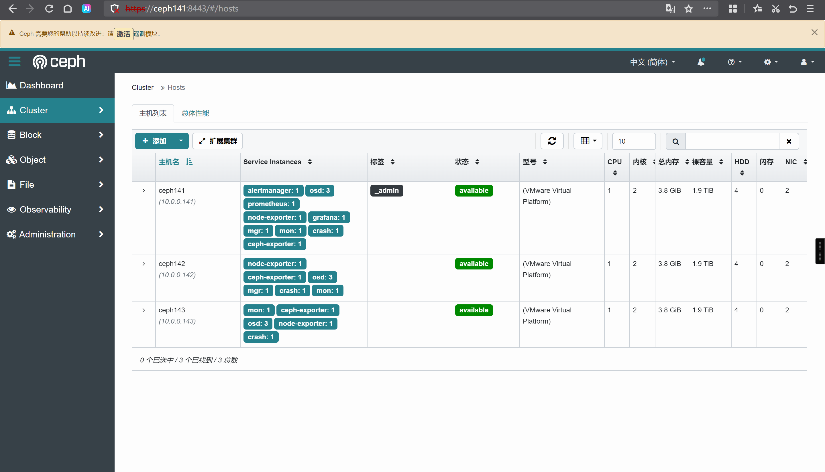 (2)为了实现冗余和高可用性,通常至少需要三个Ceph osd,因为默认数据副本是3个。