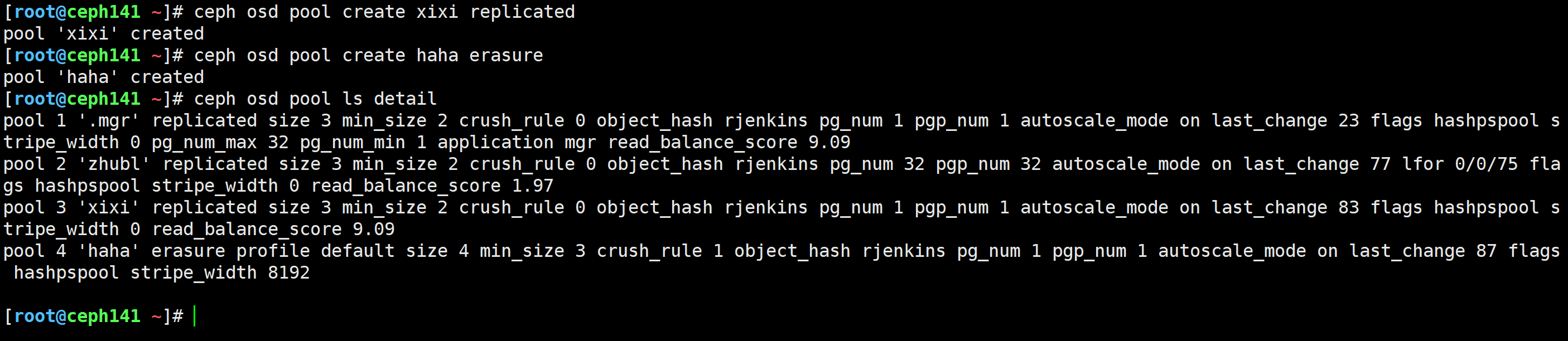 [root@ceph141 ~]# ceph osd pool create haha erasure