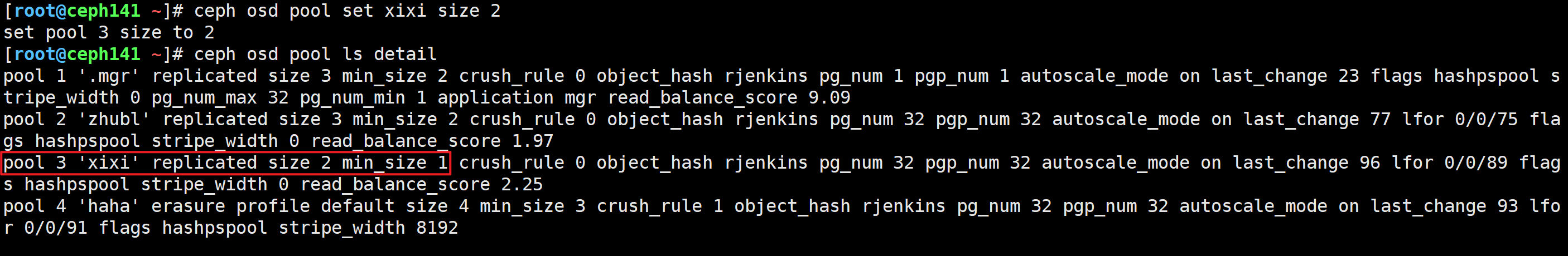 [root@ceph141 ~]# ceph osd pool set xixi size 2
