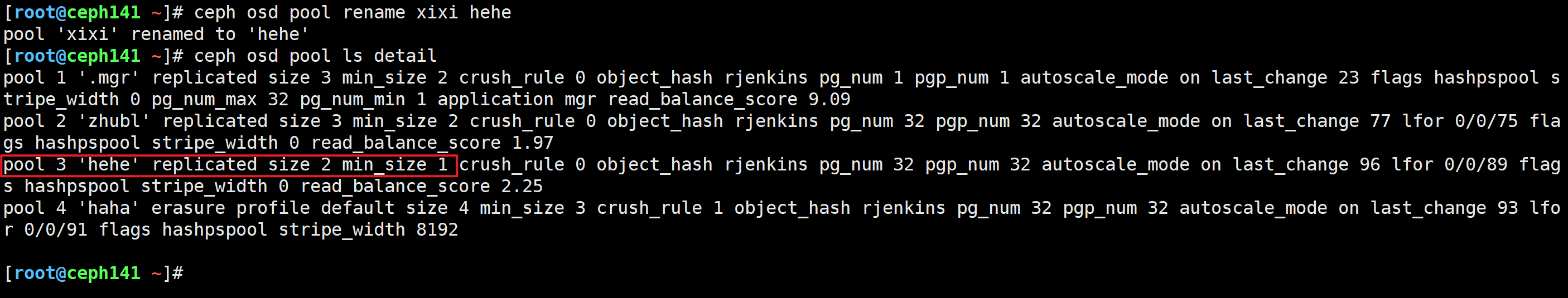 [root@ceph141 ~]# ceph osd pool rename xixi hehe