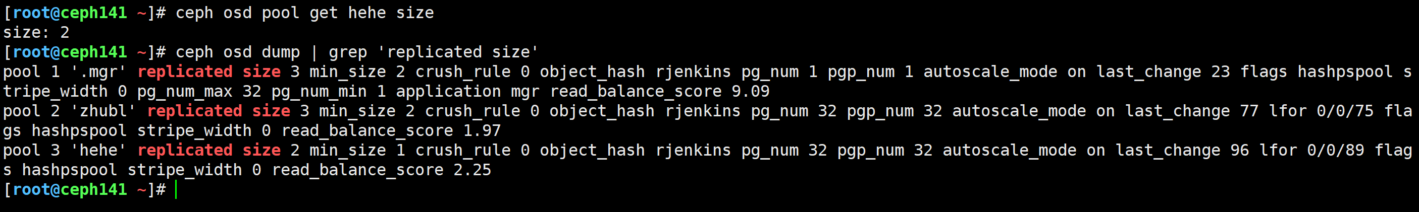 [root@ceph141 ~]# ceph osd pool get hehe size