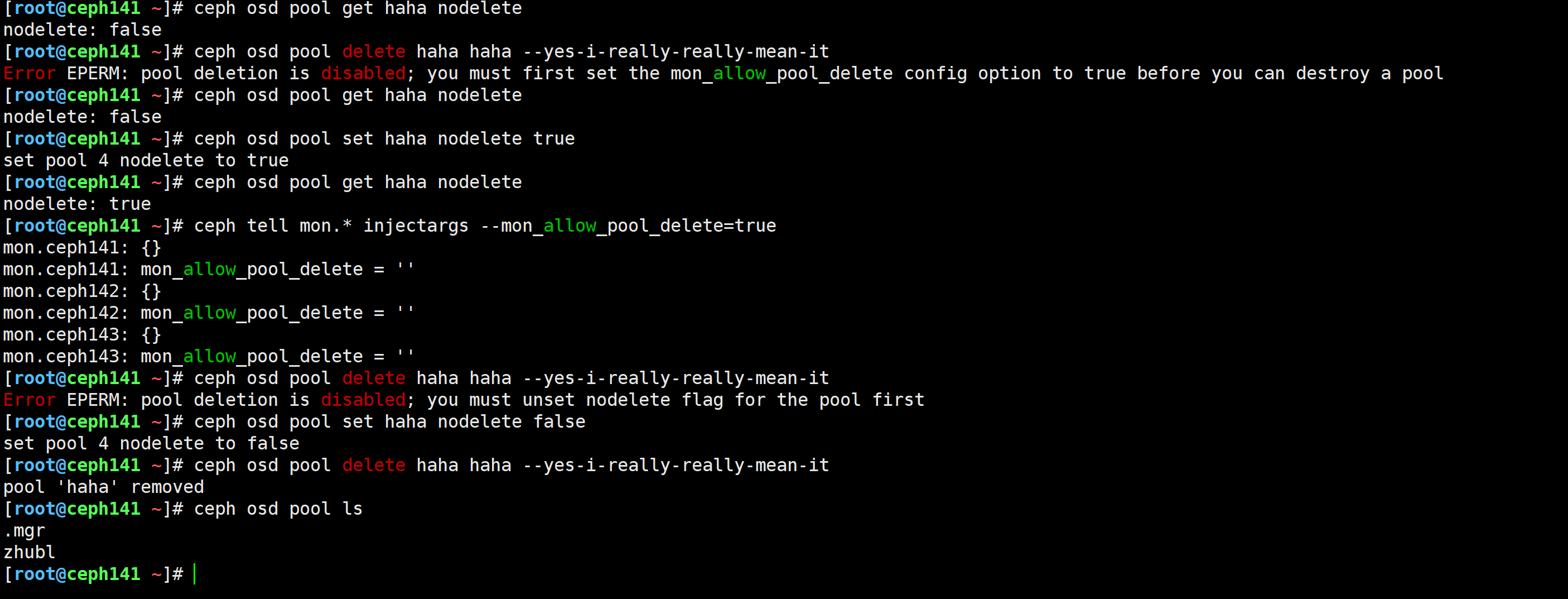 [root@ceph141 ~]# ceph osd pool delete haha haha --yes-i-really-really-mean-it