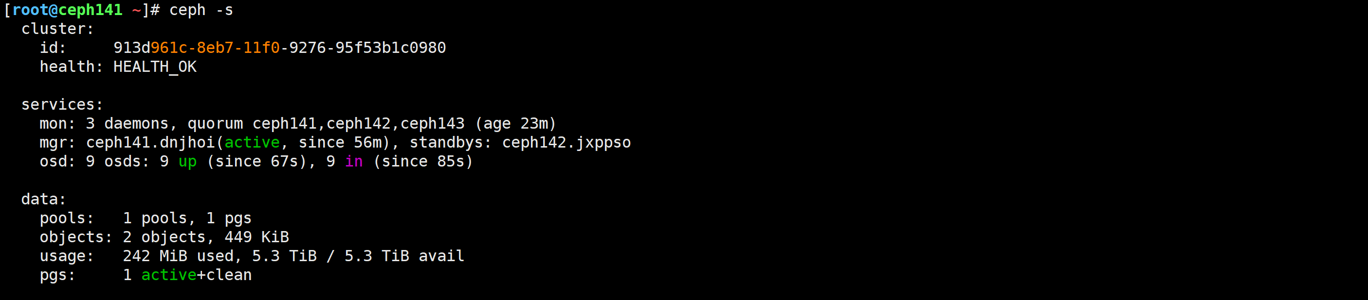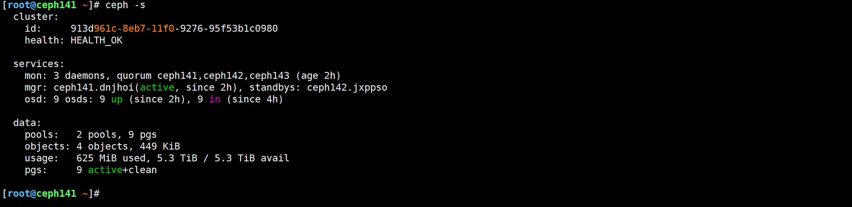 [root@ceph141 ~]# scp /etc/ceph/{ceph.conf,ceph.client.admin.keyring} 10.0.0.31:/etc/ceph