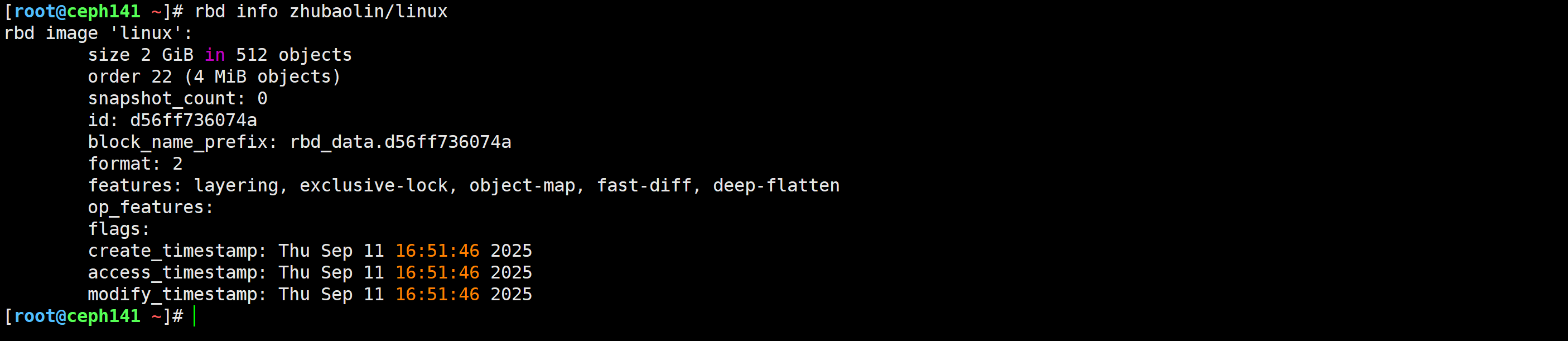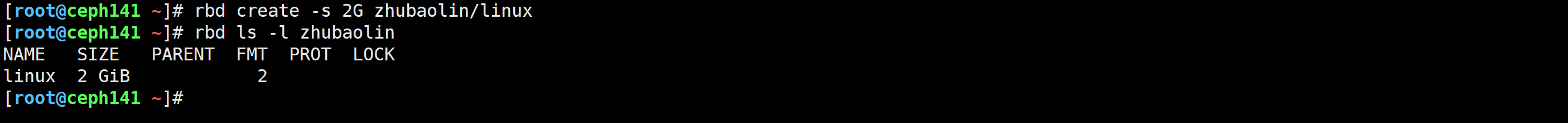 [root@ceph141 ~]# rbd create -s 2G zhubaolin/linux