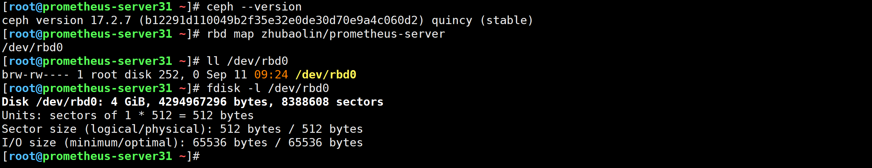 [root@prometheus-server31 ~]# rbd map zhubaolin/prometheus-server