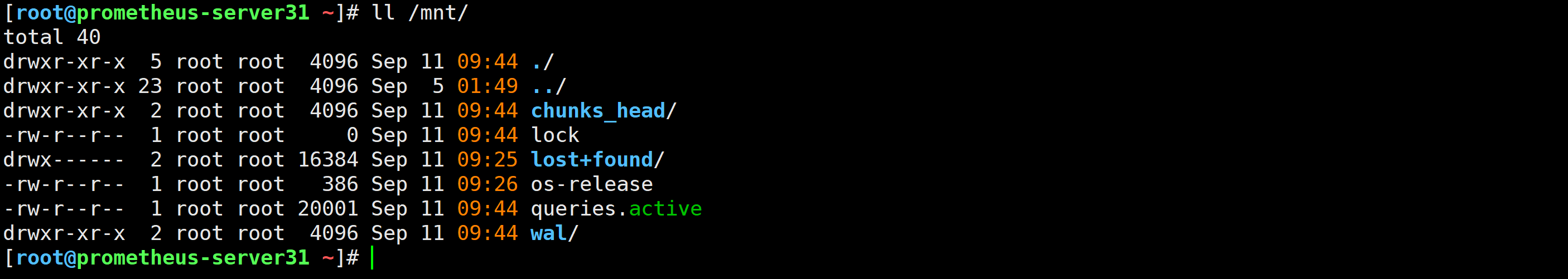 [root@prometheus-server31 /app/tools/prometheus-2.53.4.linux-amd64]# ./prometheus --storage.tsdb.path="/mnt"