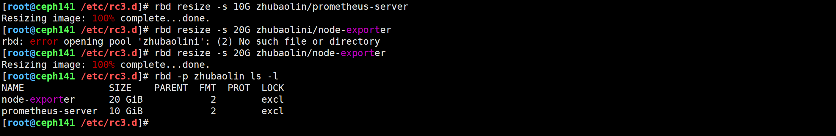 [root@ceph141 /etc/rc3.d]# rbd resize -s 10G zhubaolin/prometheus-server