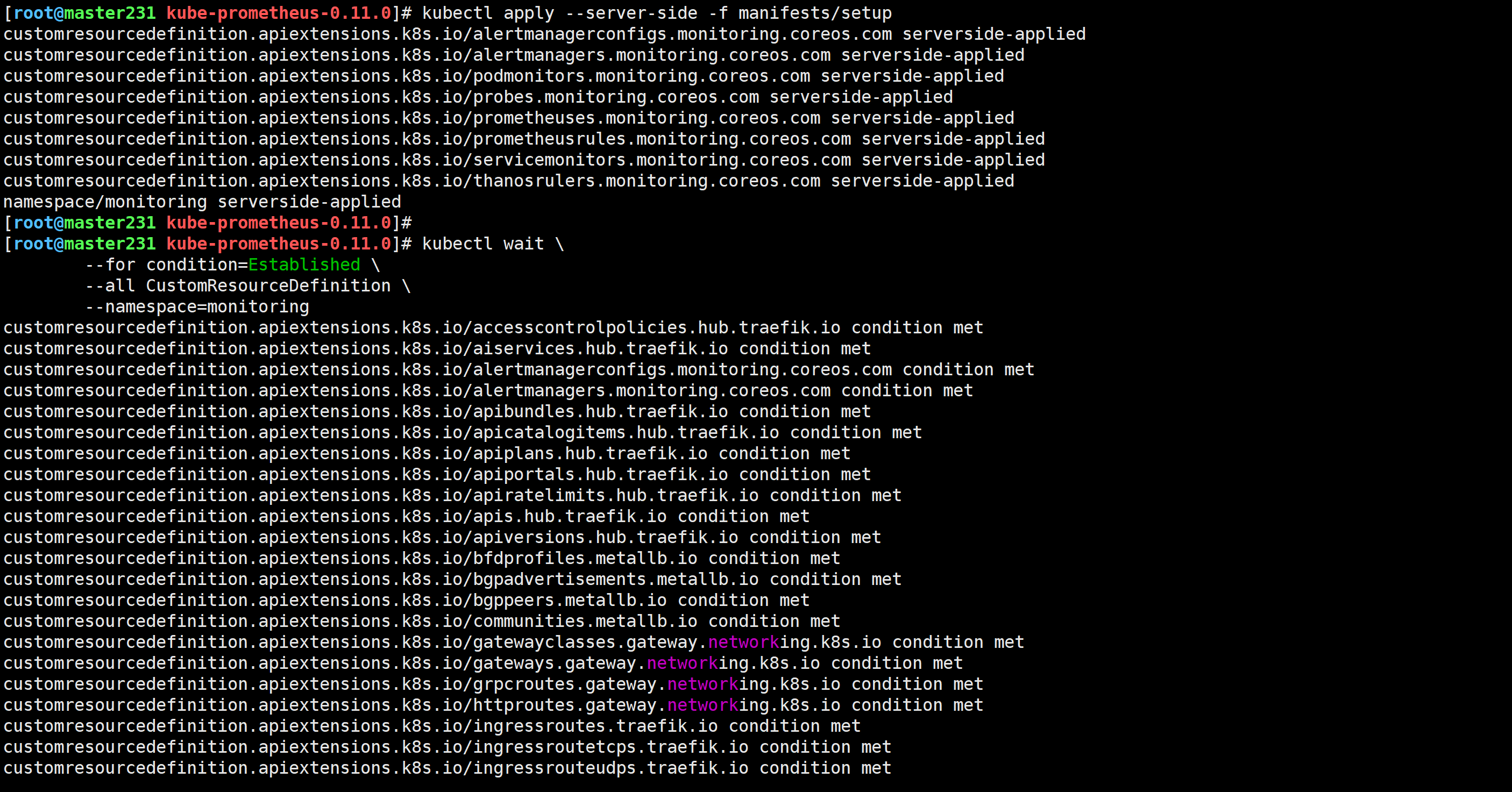 [root@master231 kube-prometheus-0.11.0]# kubectl apply --server-side -f manifests/setup