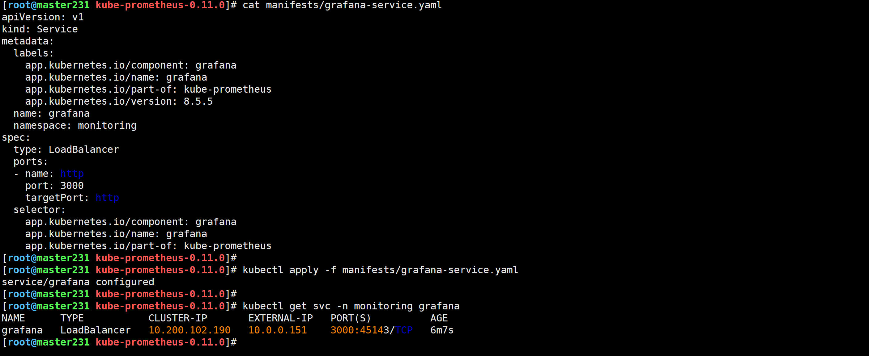 [root@master231 kube-prometheus-0.11.0]# kubectl apply -f manifests/grafana-service.yaml