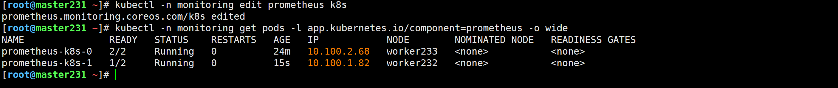 [root@master231 ~]# kubectl -n monitoring edit prometheus k8s