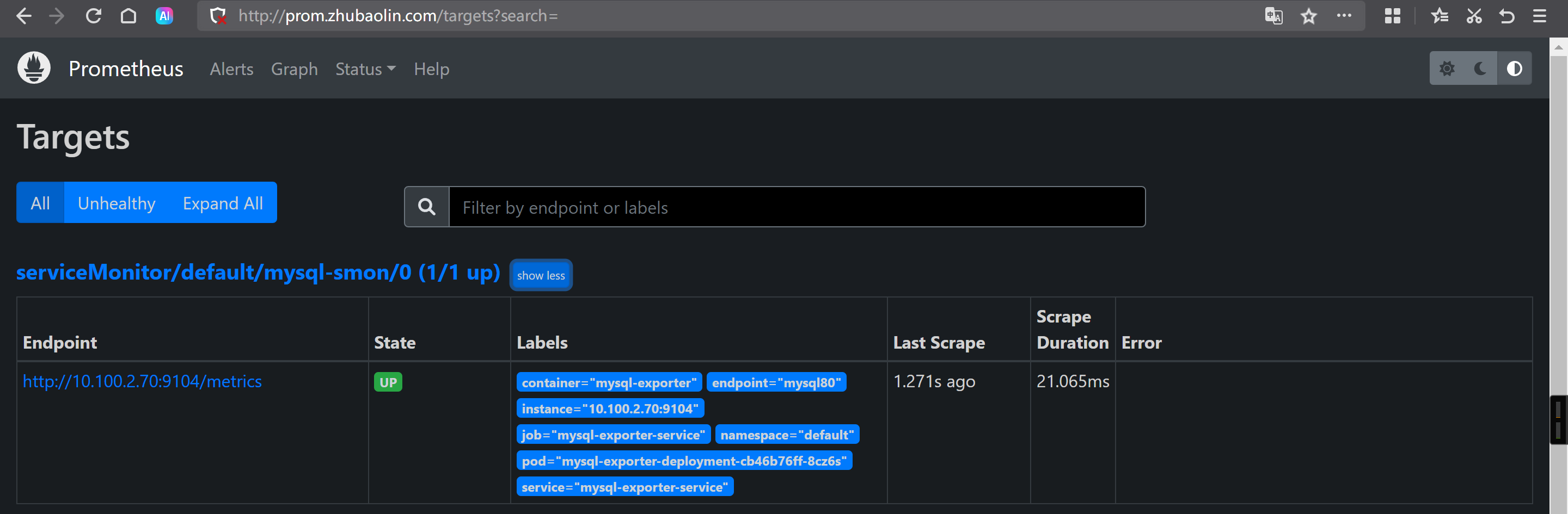 [root@master231 servicemonitors]# kubectl apply -f 02-smon-mysqld.yaml